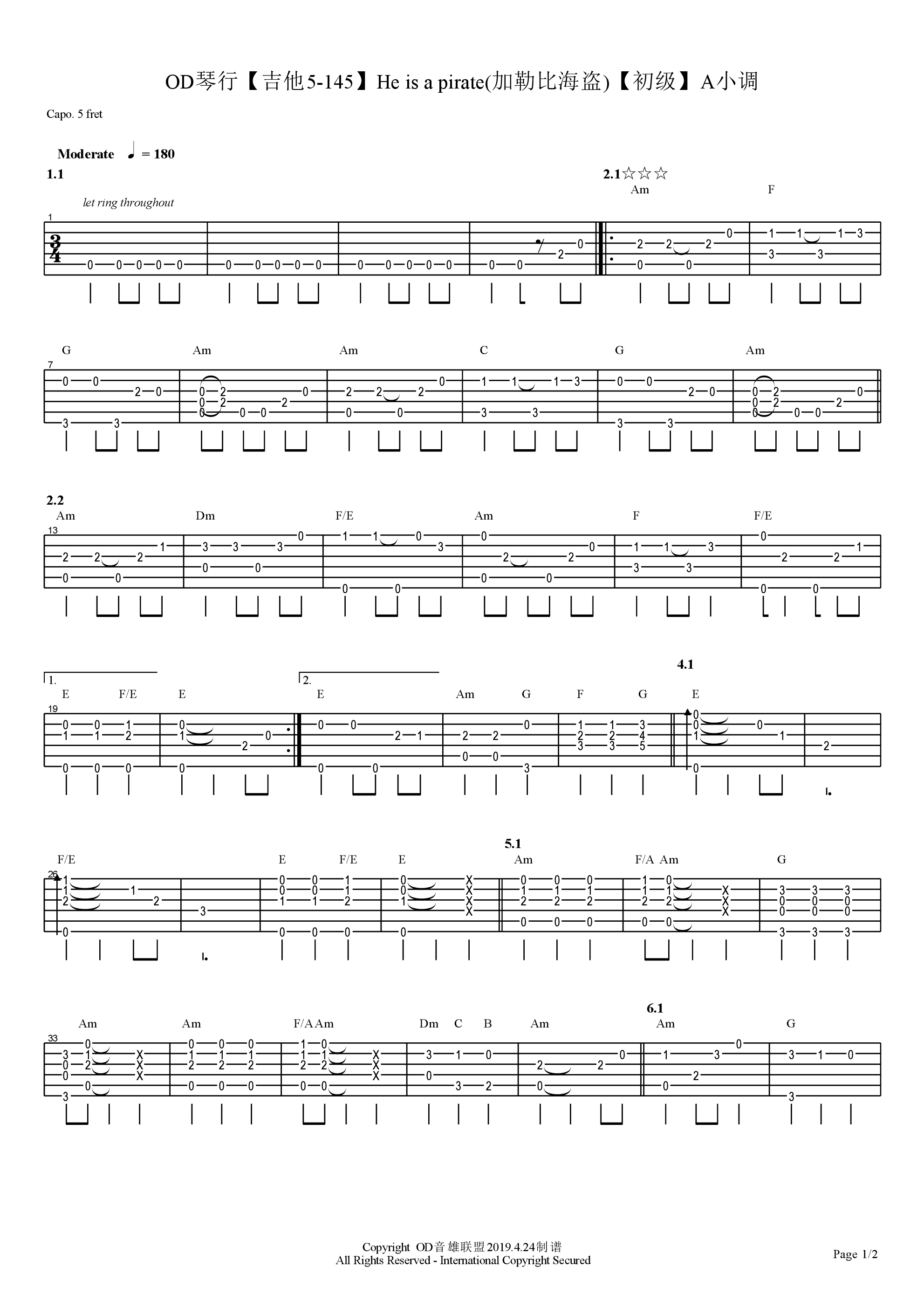 Hes a Pirate_加勒比海盗指弹谱 吉他独奏谱-图1