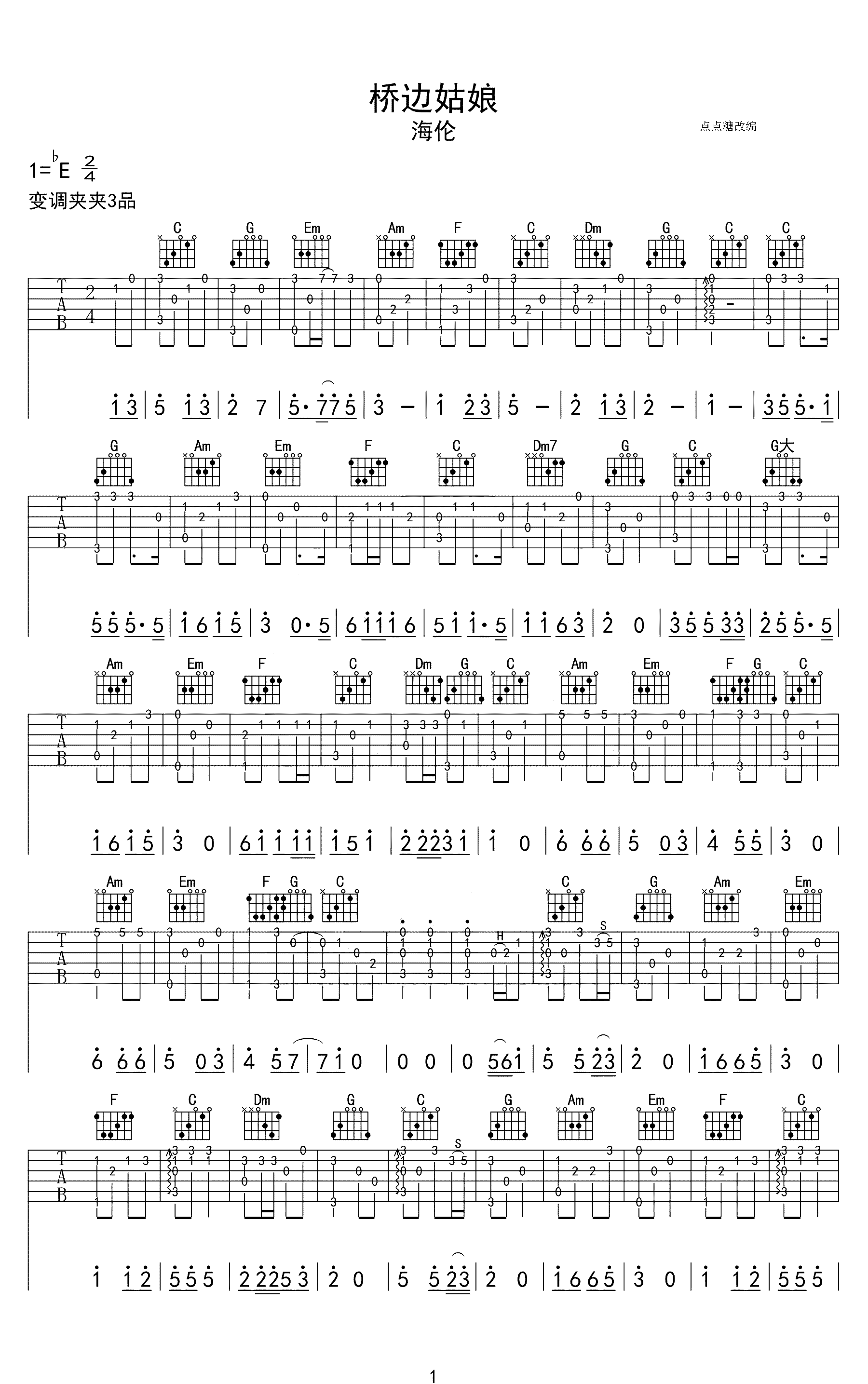 《桥边姑娘》吉他谱独奏 每天练习
