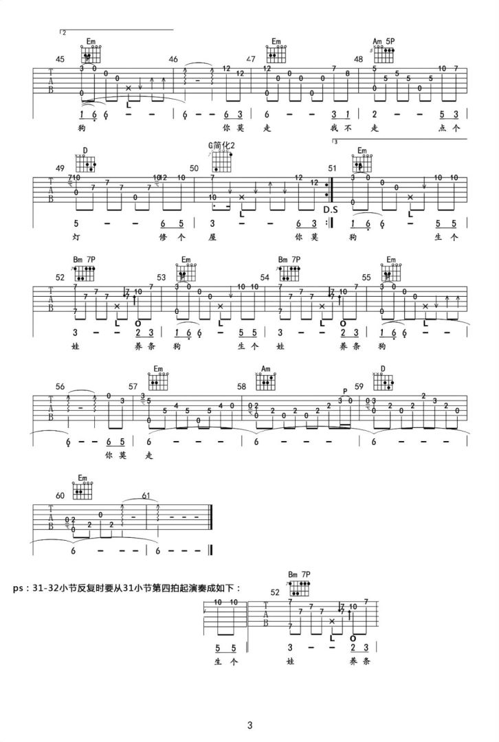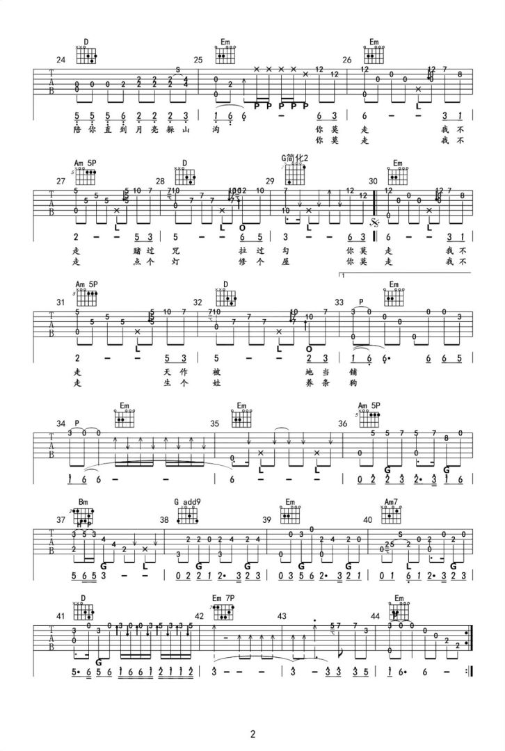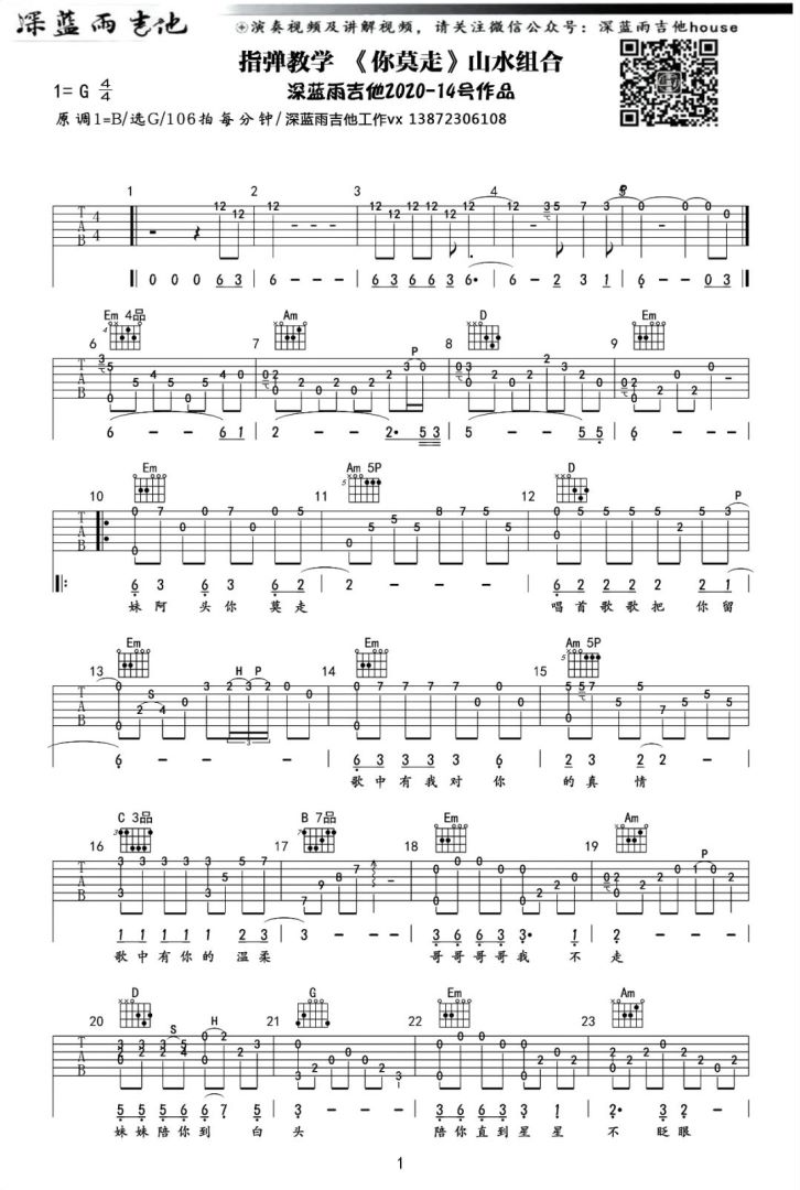 《你莫走》山水组合 G调原版 吉他弹唱谱