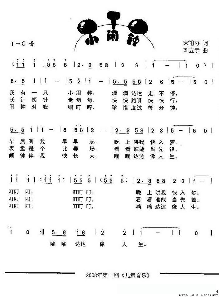 小闹钟(宋祖芬词 刘立崇曲)的简谱歌词