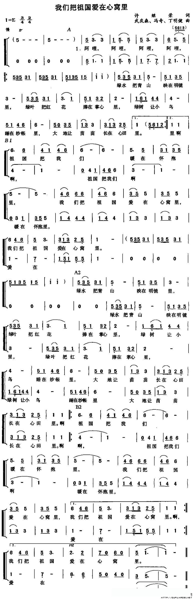 我们把祖国爱在心窝里(合唱)的简谱歌词