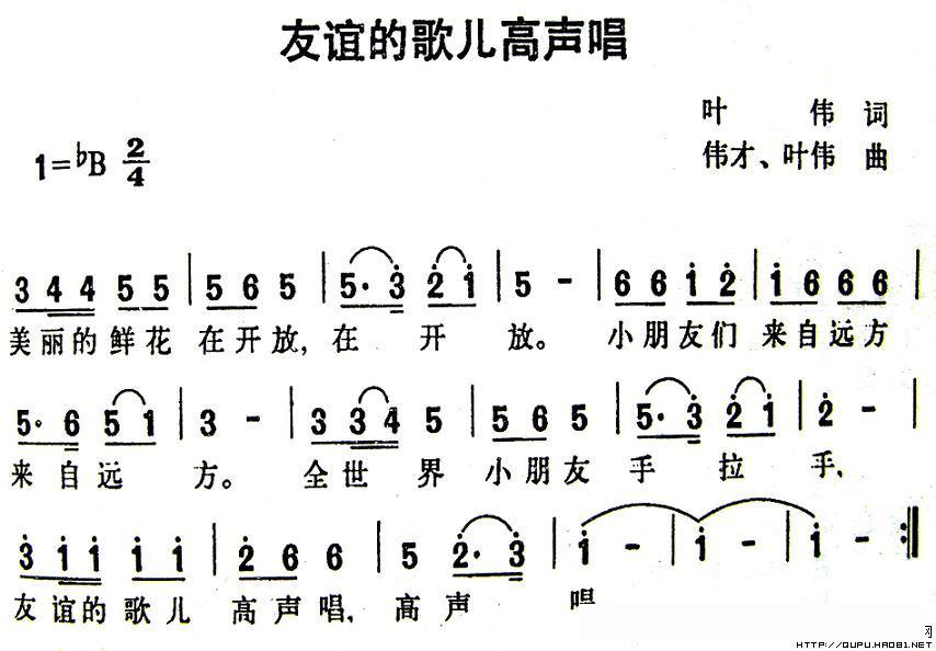 友谊的歌儿高声唱的简谱歌词