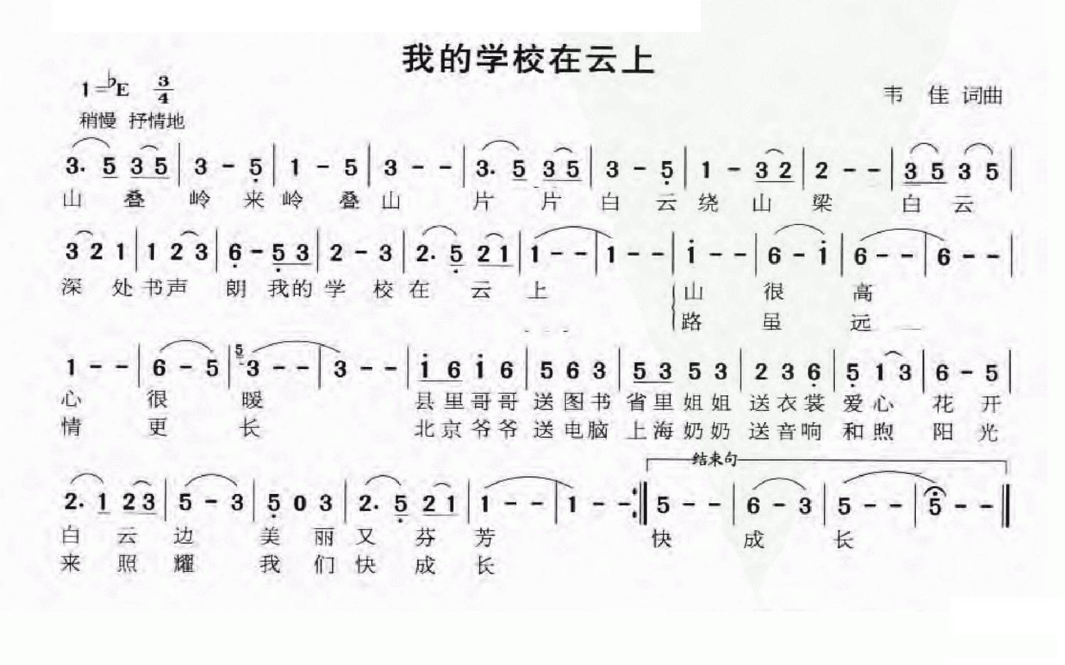 我的学校在云上(韦佳词曲)的简谱歌词我的学校在云上(韦佳词曲)的简谱歌词