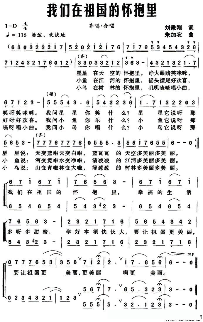 我们在祖国的怀抱里(合唱)的简谱歌词