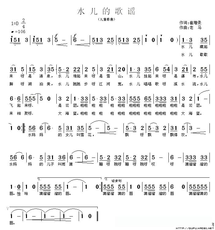 水儿的歌谣的简谱歌词