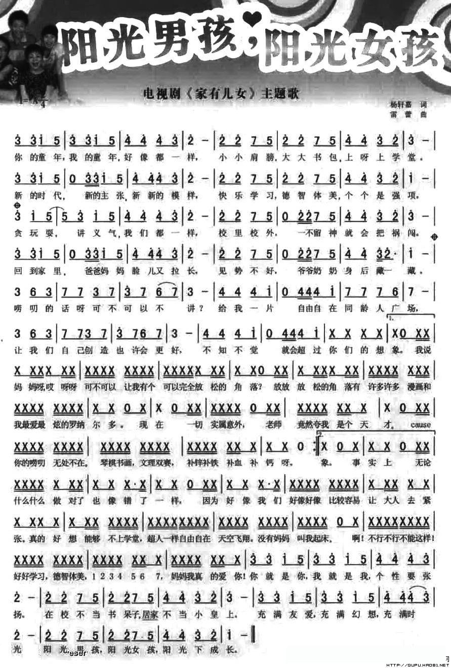阳光男孩,阳光女孩(电视剧《家有儿女》主题歌)的简谱歌词