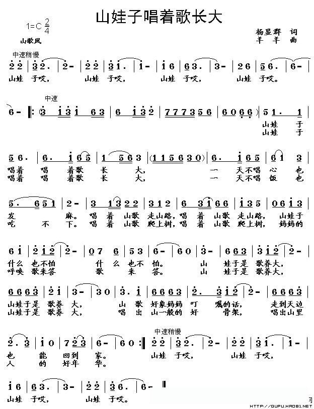 山娃子唱着歌长大(杨显群词 羊羊曲)的简谱歌词
