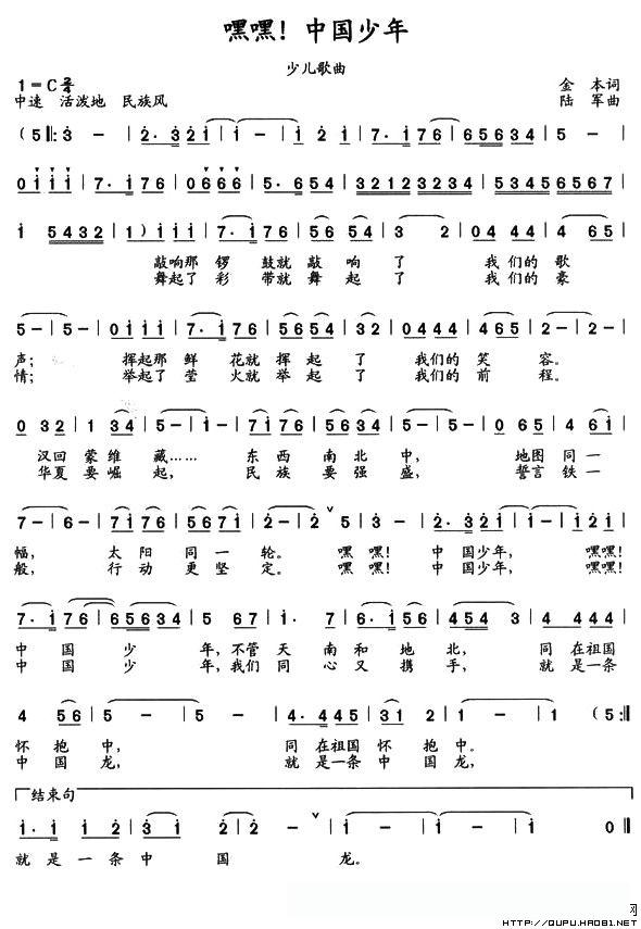 嘿嘿!中国少年(金本词 陆军曲)的简谱歌词