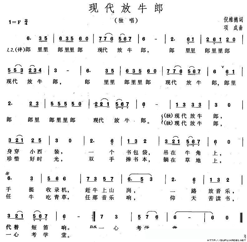 现代放牛郎的简谱歌词现代放牛郎的简谱歌词