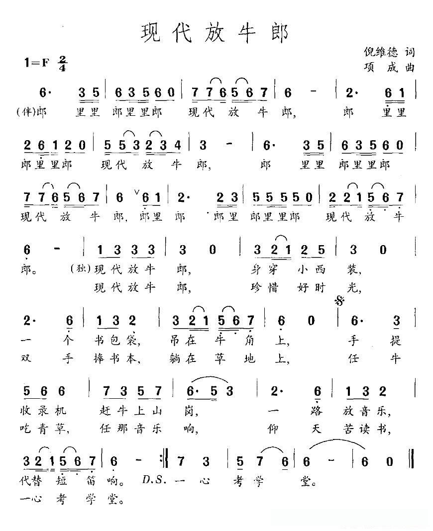 现代放牛郎的简谱歌词