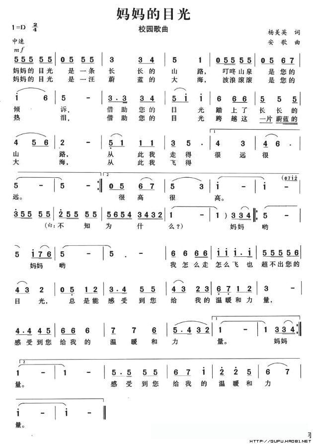 妈妈的目光(杨美英词 安歌曲)的简谱歌词
