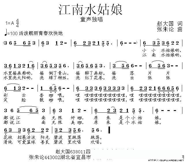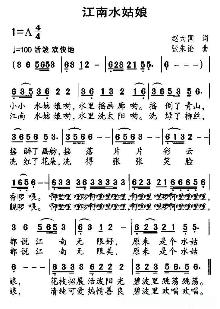 江南水姑娘(赵大国词 张朱论曲)的简谱歌词江南水姑娘(赵大国词 张朱论曲)的简谱歌词