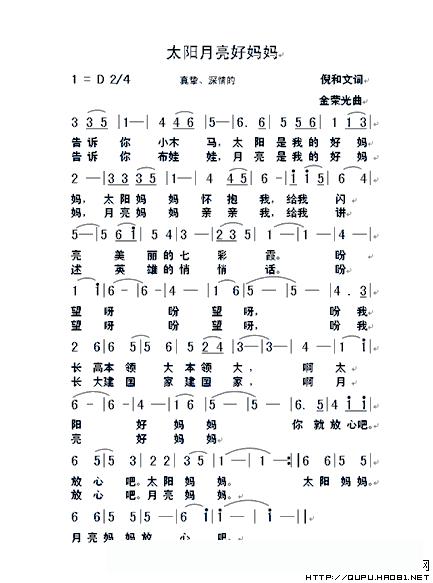 太阳月亮好妈妈的简谱歌词