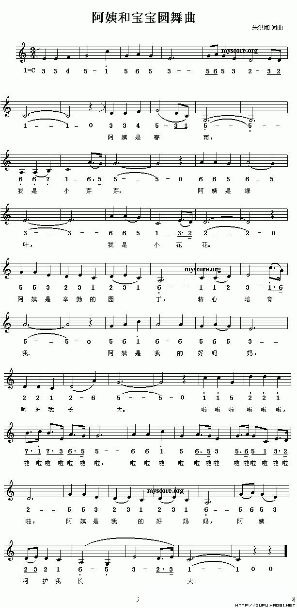 阿姨和宝宝圆舞曲(线、的简谱混排版)的简谱歌词