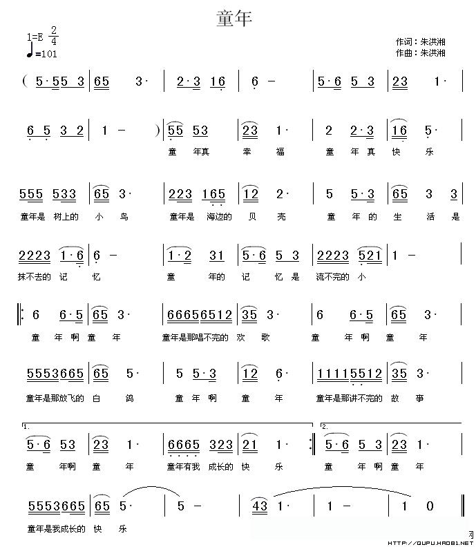 童年(朱洪湘词曲)的简谱歌词
