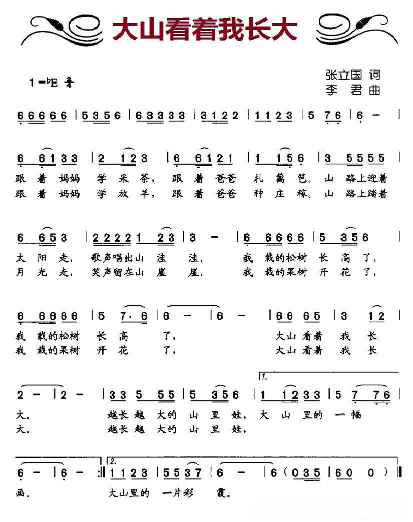 大山看着我长大(张立国词 李君曲)的简谱歌词