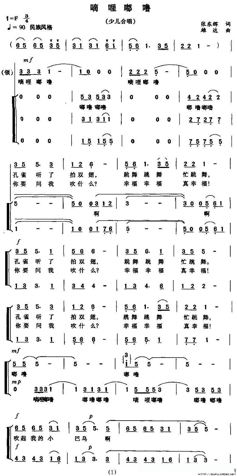 嘀哩嘟噜(合唱)的简谱歌词嘀哩嘟噜(合唱)的简谱歌词