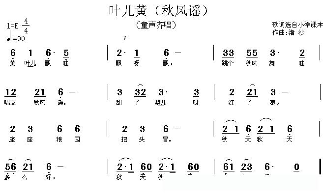 叶儿黄(又名:秋风谣)的简谱歌词