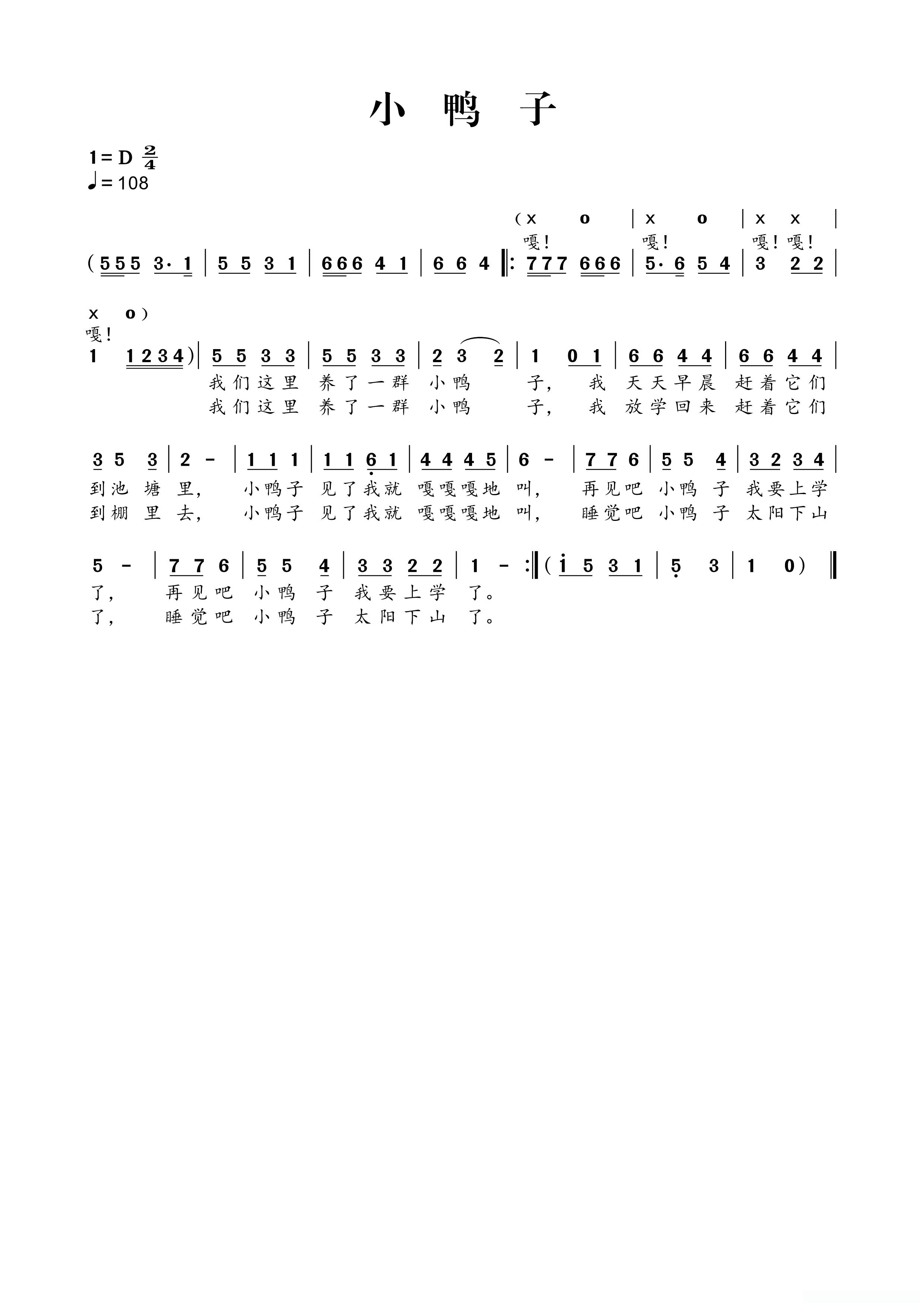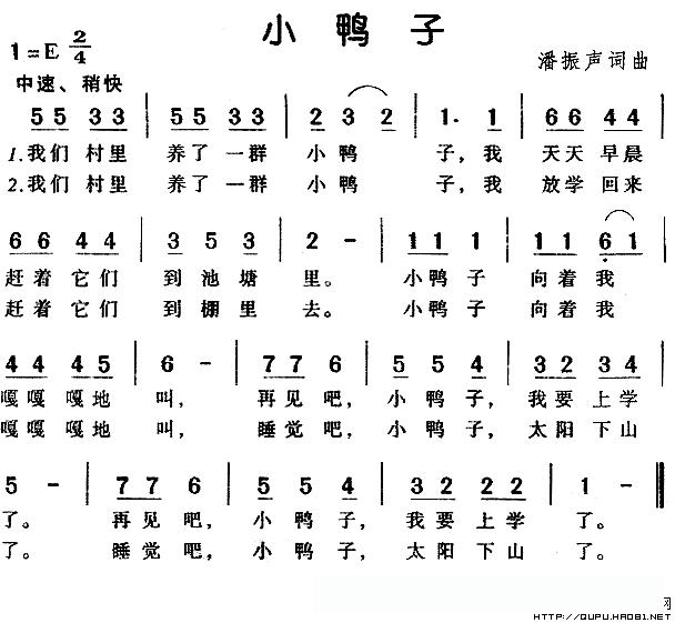 小鸭子见了我就嘎嘎嘎地叫 ,