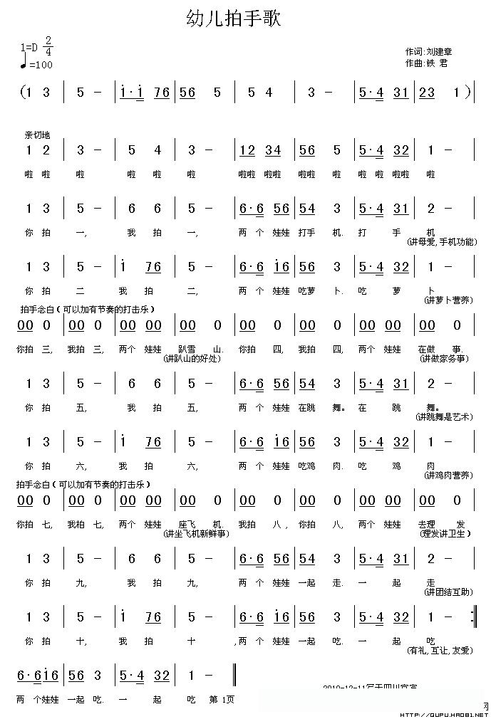 幼儿拍手歌的简谱歌词