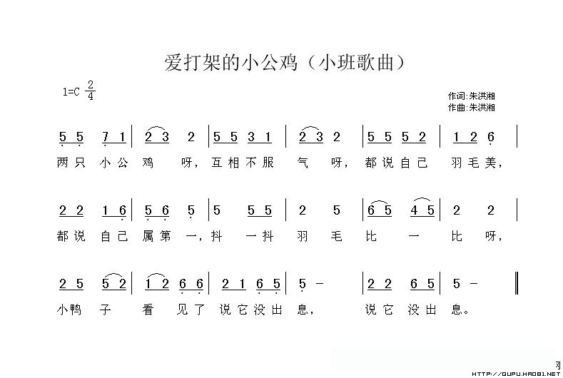 爱打架的小公鸡的简谱歌词
