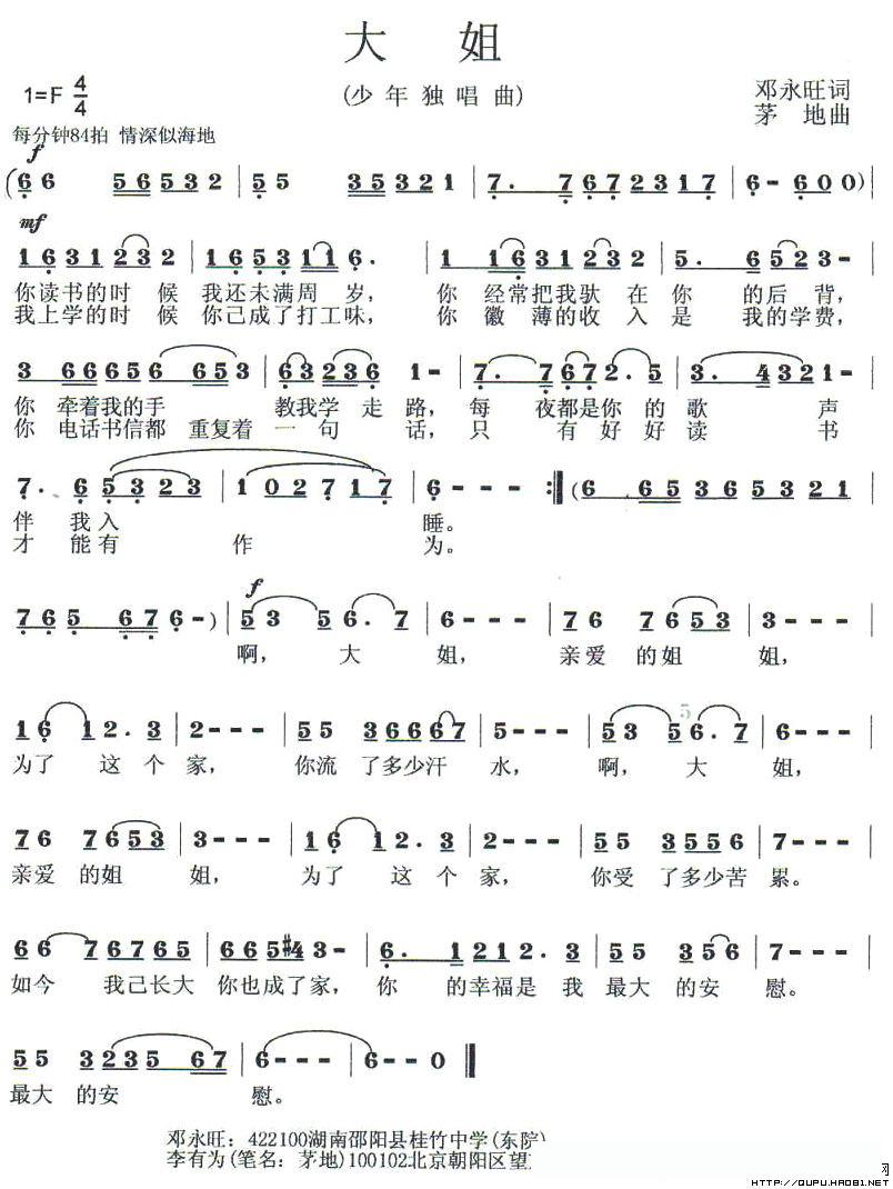 大姐(邓永旺词 茅地曲)的简谱歌词