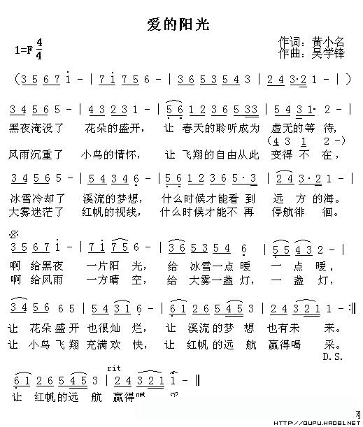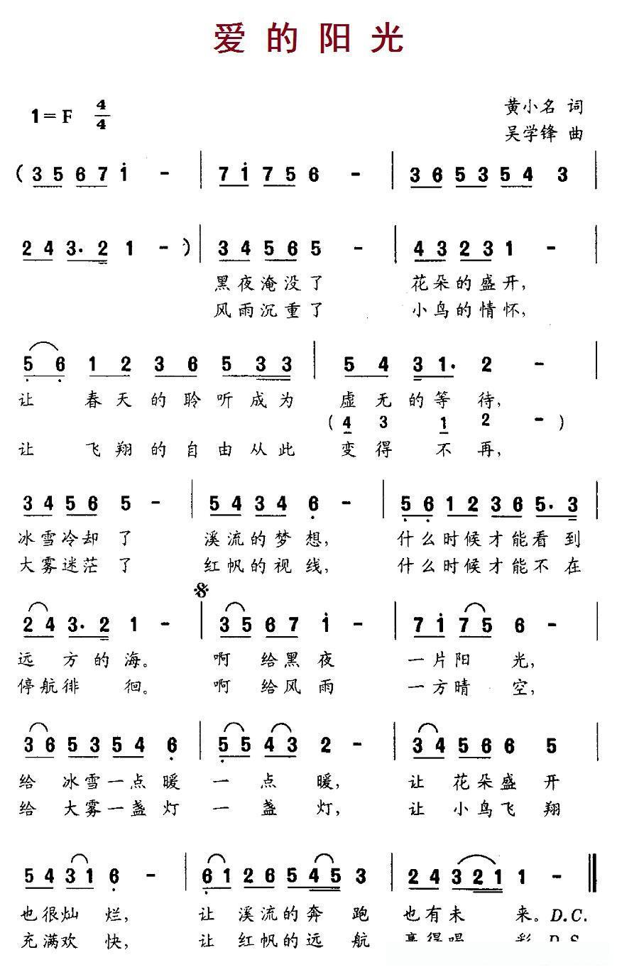 爱的阳光(黄小名词 吴学锋曲)的简谱歌词爱的阳光(黄小名词 吴学锋曲)的简谱歌词