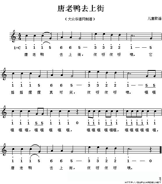 唐老鸭去上街(线、的简谱混排版)的简谱歌词