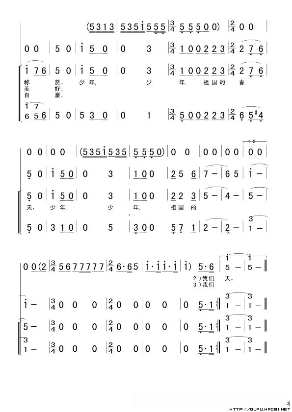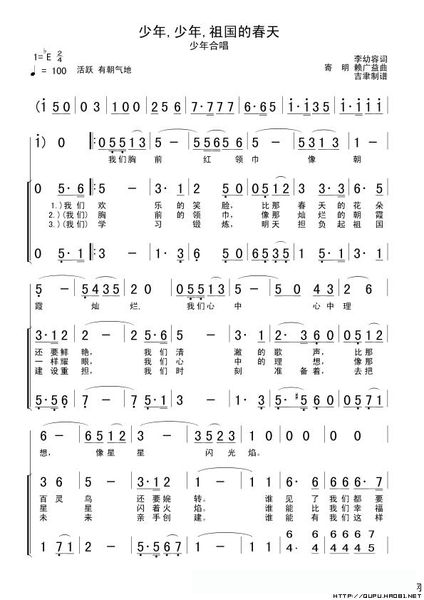 少年,少年,祖国的春天(合唱、版本一)的简谱歌词少年,少年,祖国的春天(合唱、版本一)的简谱歌词
