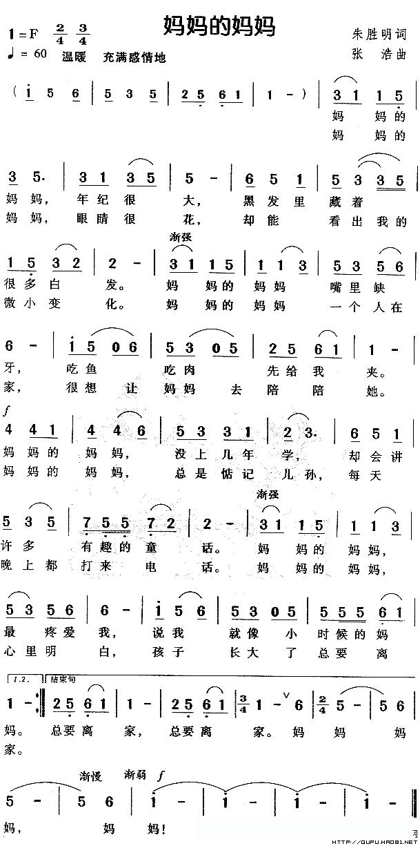 妈妈的妈妈(朱胜名词 张浩曲)的简谱歌词