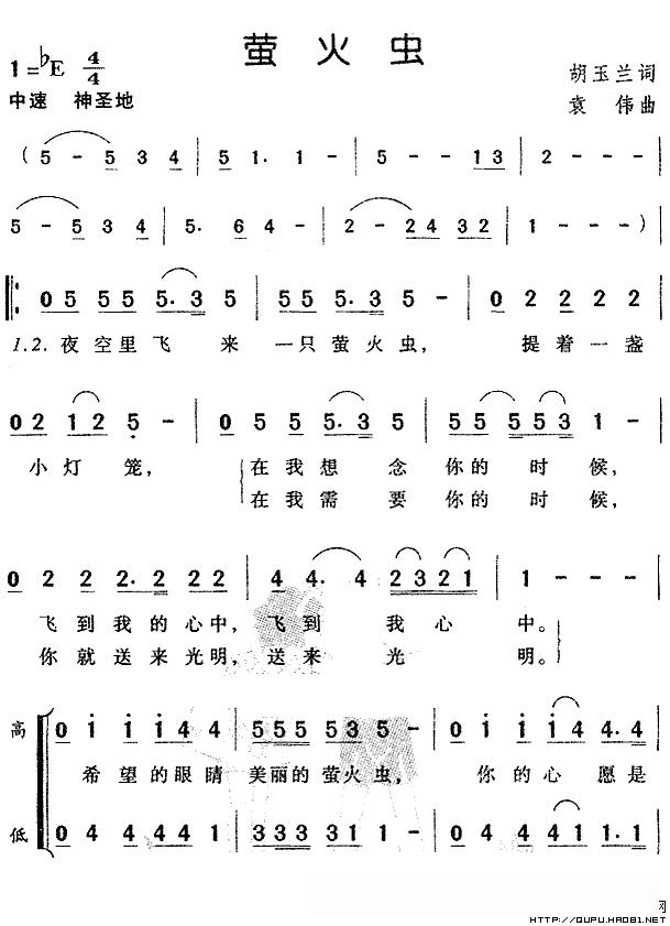 萤火虫(胡玉兰词 袁伟曲)的简谱歌词萤火虫(胡玉兰词 袁伟曲)的简谱歌词