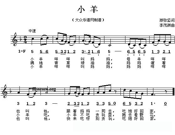 小羊(线、的简谱混排版)的简谱歌词