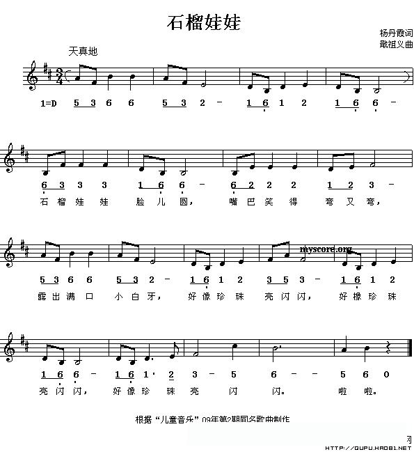 石榴娃娃(杨丹霞词 戢祖义曲、线的简谱混排版)的简谱歌词