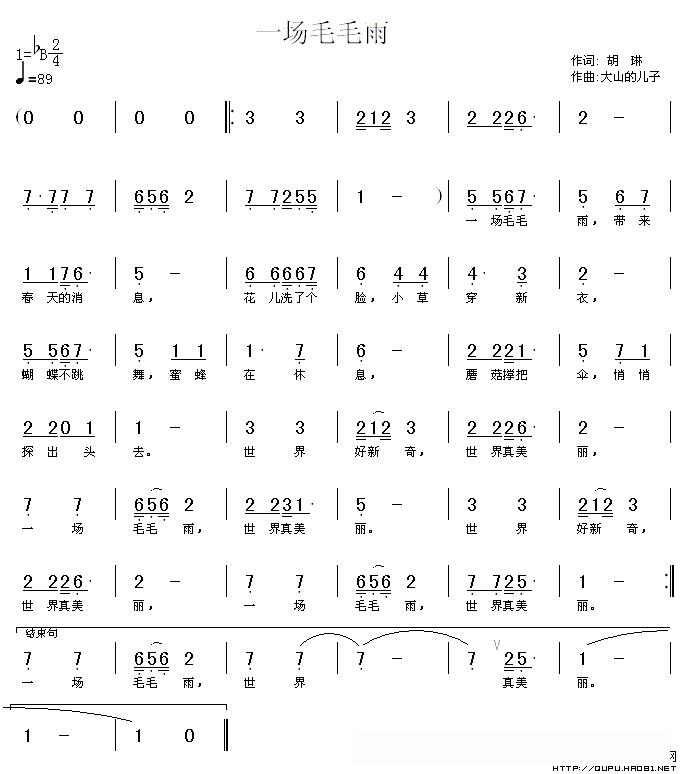 一场毛毛雨的简谱歌词