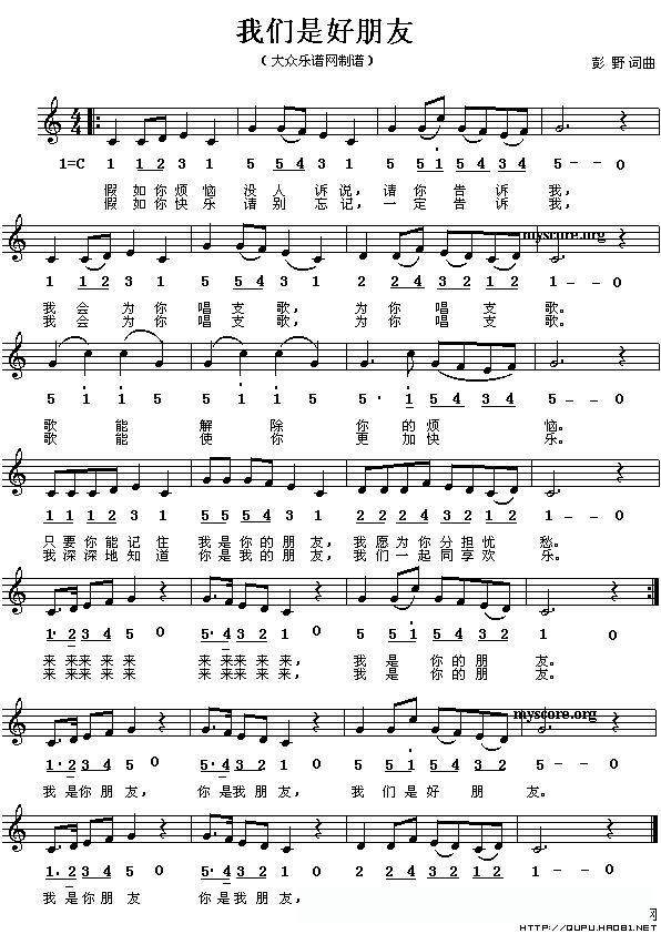 我们是好朋友(线、的简谱混排版)的简谱歌词