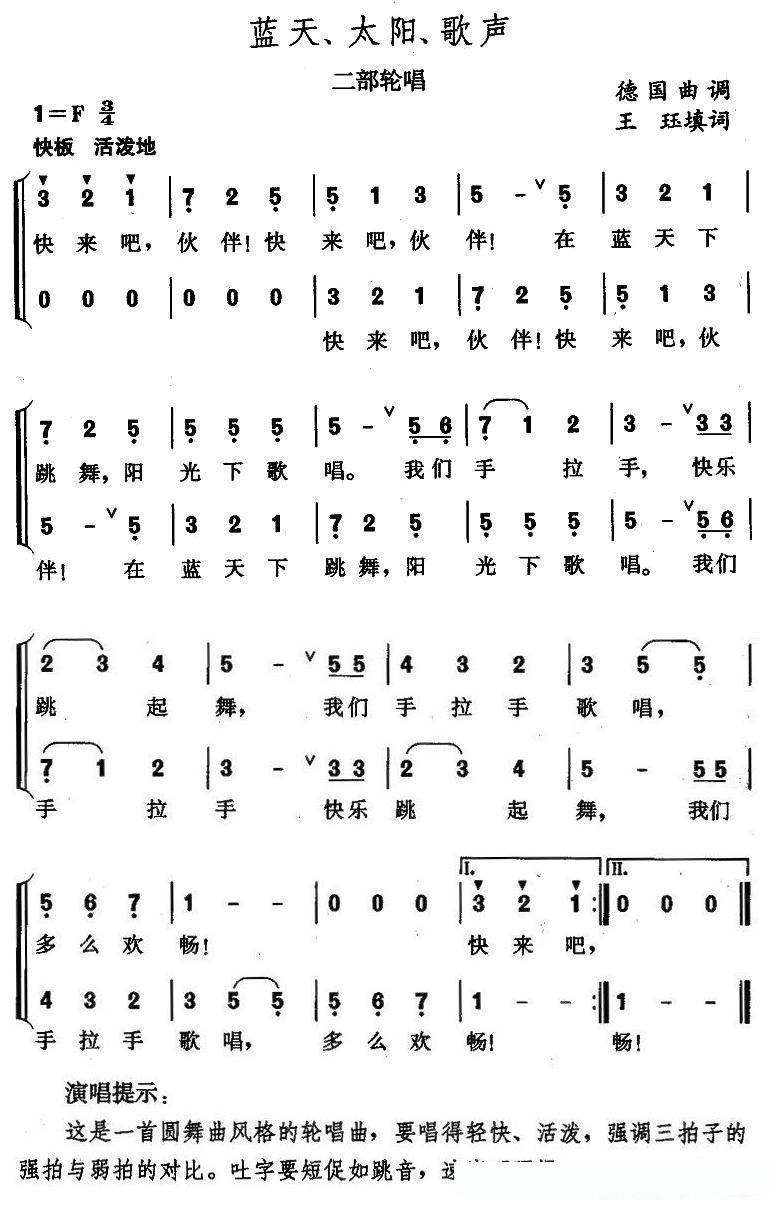 蓝天、太阳、歌声(二部轮唱)的简谱歌词