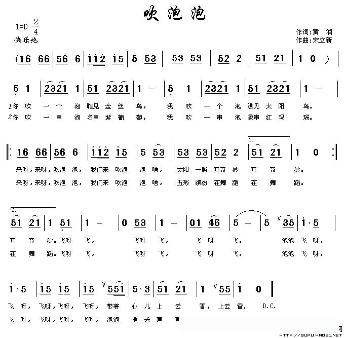吹泡泡(黄润词 宋立新曲)的简谱歌词