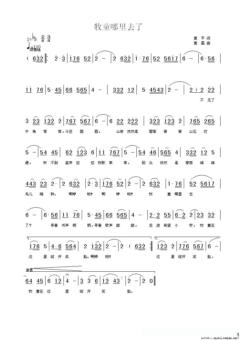 牧童哪里去了的简谱歌词牧童哪里去了的简谱歌词牧童哪里去了的简谱歌词