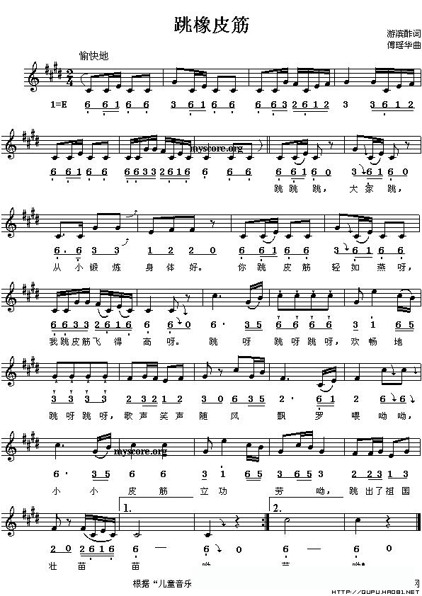 跳橡皮筋(线、的简谱混排版)的简谱歌词