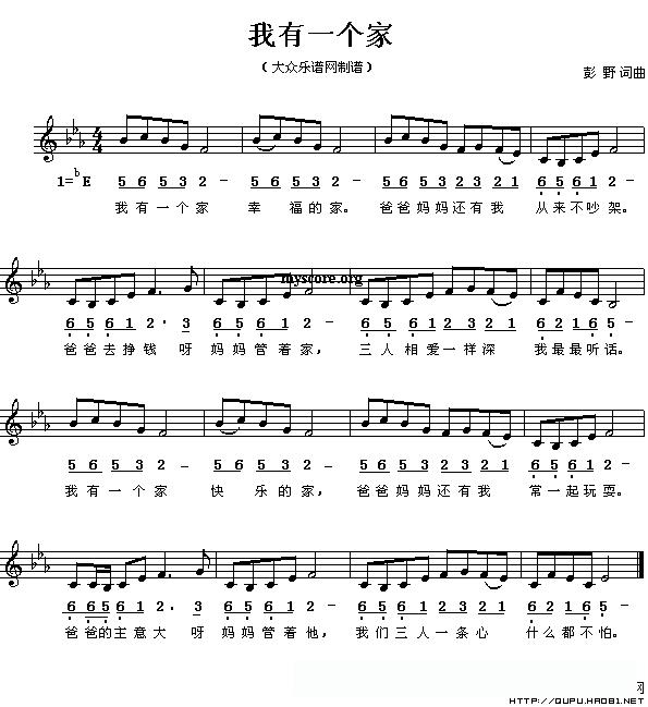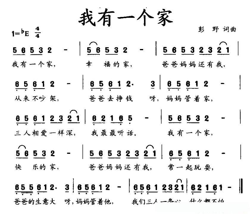 我有一个家(彭野词曲)的简谱歌词我有一个家(彭野词曲)的简谱歌词