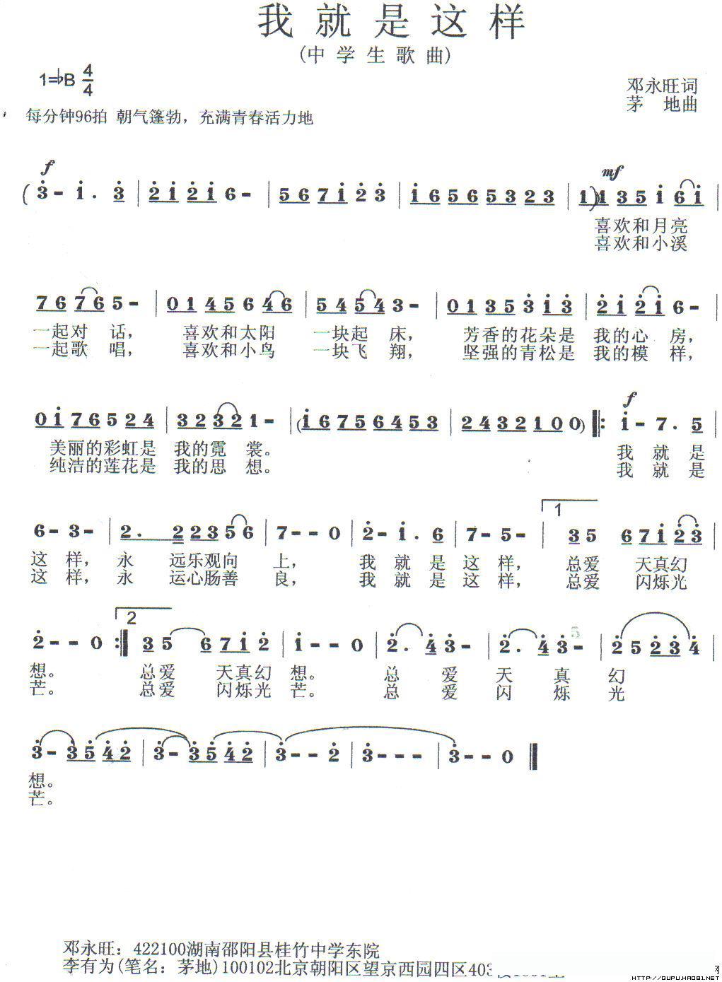我就是这样的简谱歌词