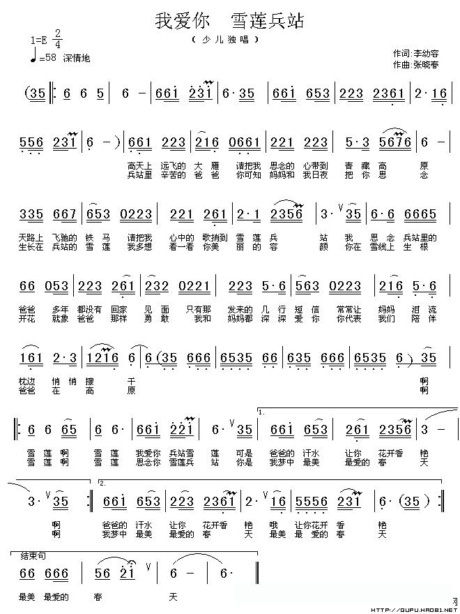 我爱你 雪莲兵站的简谱歌词