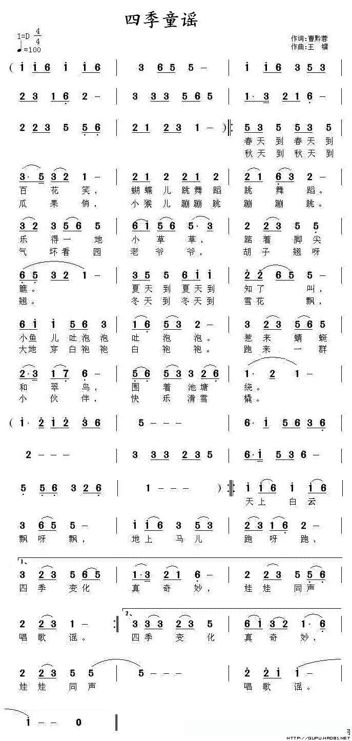 四季童谣(紫竹心词 王镭曲)的简谱歌词