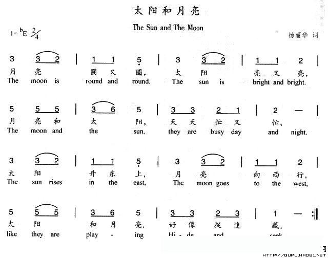 太阳和月亮(杨丽华词曲)的简谱歌词