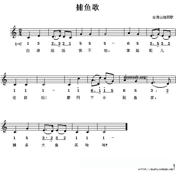 捕鱼歌(线、的简谱混排版)的简谱歌词