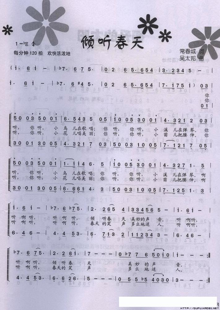 倾听春天(常春城词 吴太邦曲、合唱)的简谱歌词