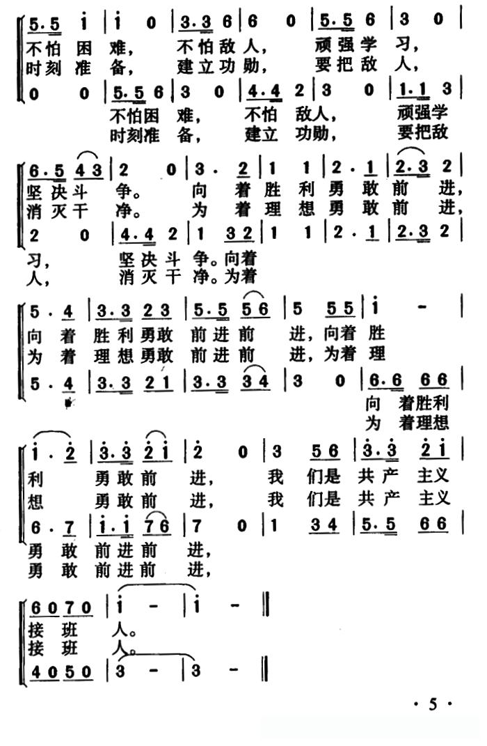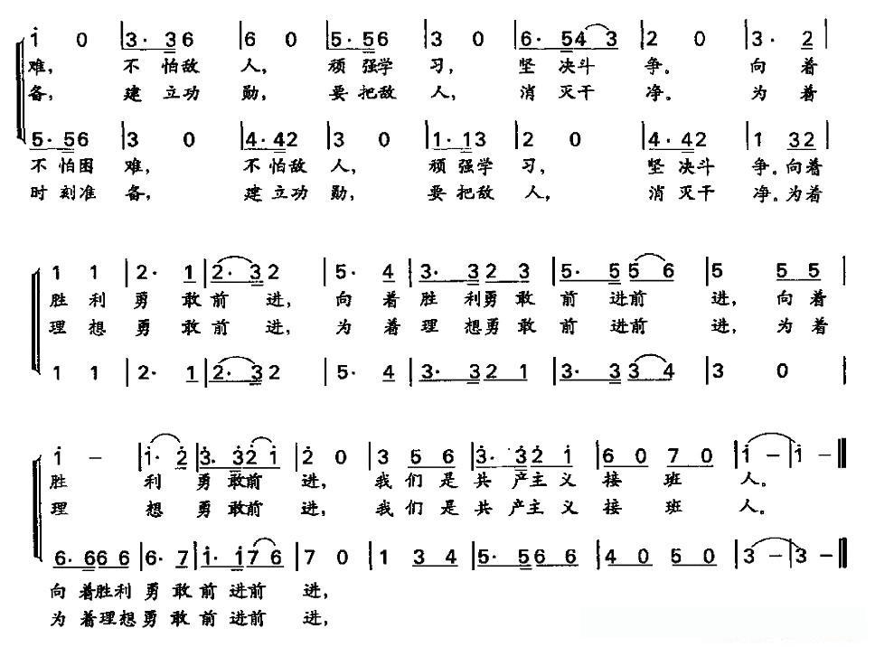 向着胜利,勇敢前进,我们是共产主义接班人。