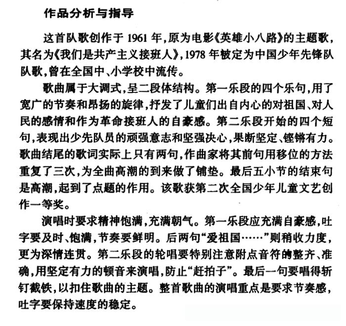 《我们是共产主义接班人》是由周郁辉作词,寄明作曲,原为1961年公映的电影《英雄小八路》的主题曲。这首歌旋律高亢,充满革命激情,于1980年被评为全国少年儿童文艺创作一等奖。