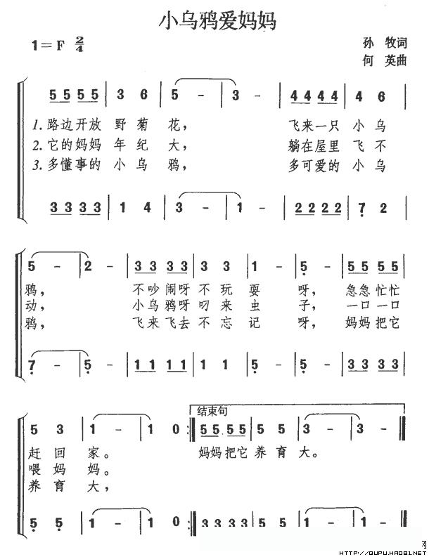 小乌鸦爱妈妈(合唱)的简谱歌词