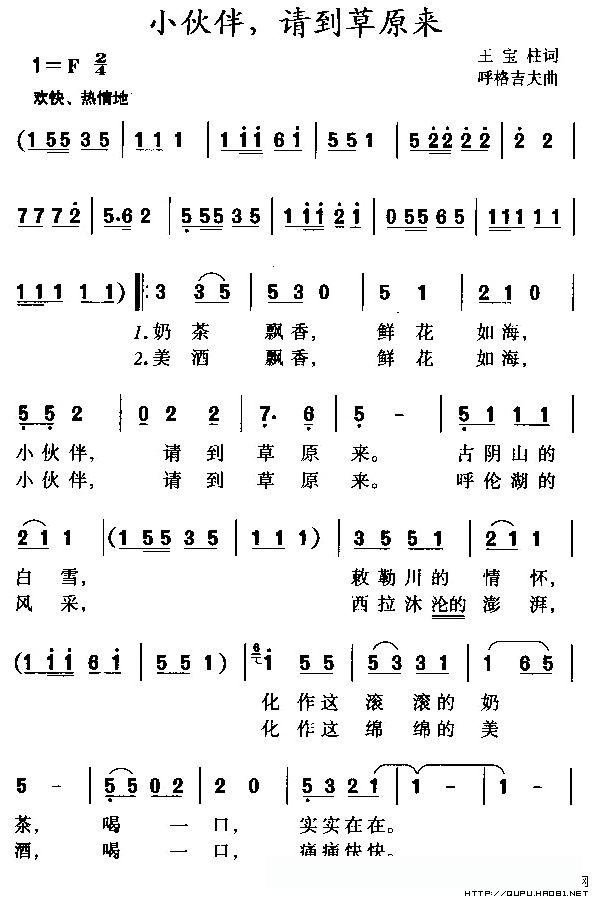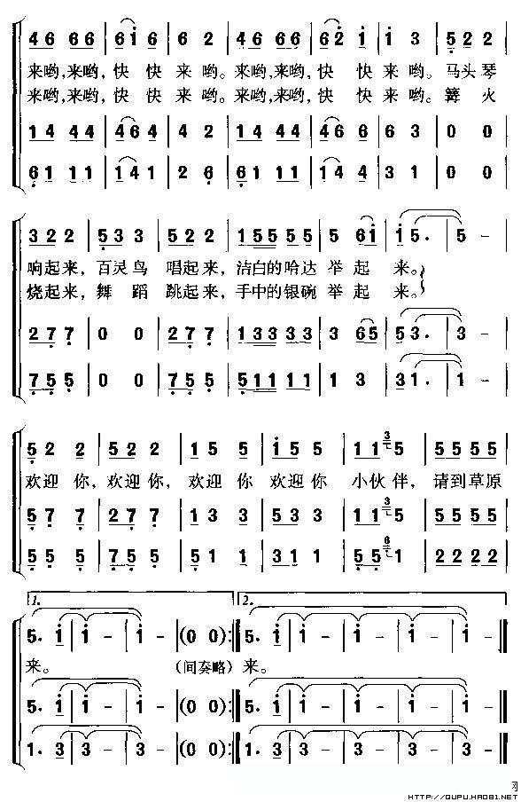 小伙伴,请到草原来(合唱)的简谱歌词小伙伴,请到草原来(合唱)的简谱歌词